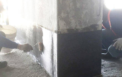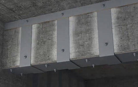 The steel plate is bonded to the surface of concrete members with high performance epoxy adhesives, so that the steel plate and concrete form a unified whole. The purpose of strengthening the bearing capacity and stiffness of the components is achieved by using the good tensile strength of the steel plate.