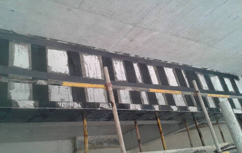 Beam, column, slab, wall strengthening by bonded carbon fiber fabric, increase the crack resistance or shear capacity of the structure, improve the strength, rigidity, crack resistance and elongation of the structure.