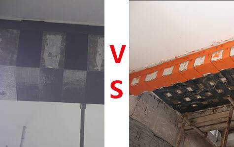 In the structure strengthening, pasting carbon fiber fabric(CFRP) and paste steel plate in the concrete structure is two frequently-used method.